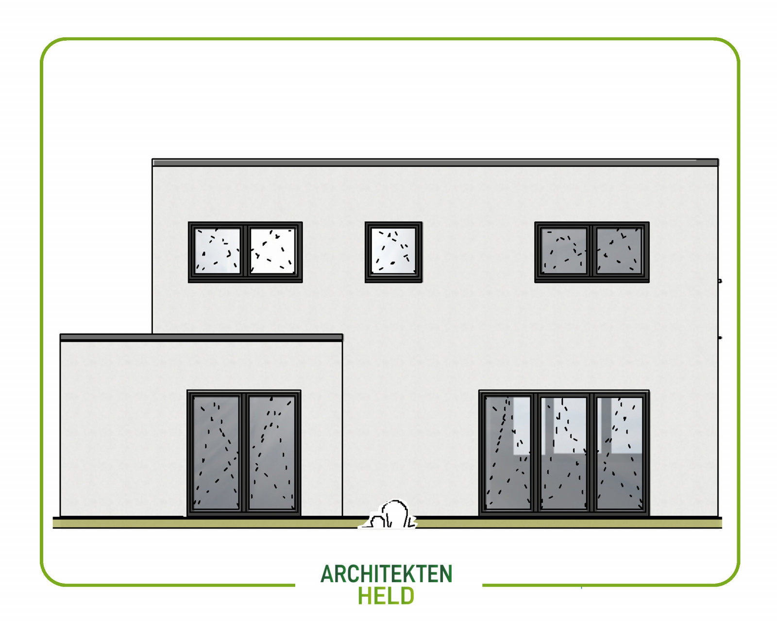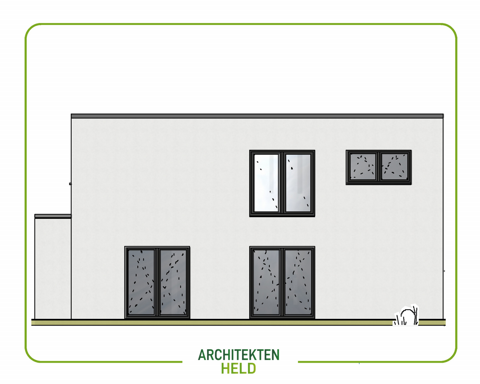 Dieses Bauhaus / Flachdachhaus mit Einliegerwohnung und 188 m² Wohnfläche haben wir auf Kundenwunsch und grundstücksoptimiert angefertigt.