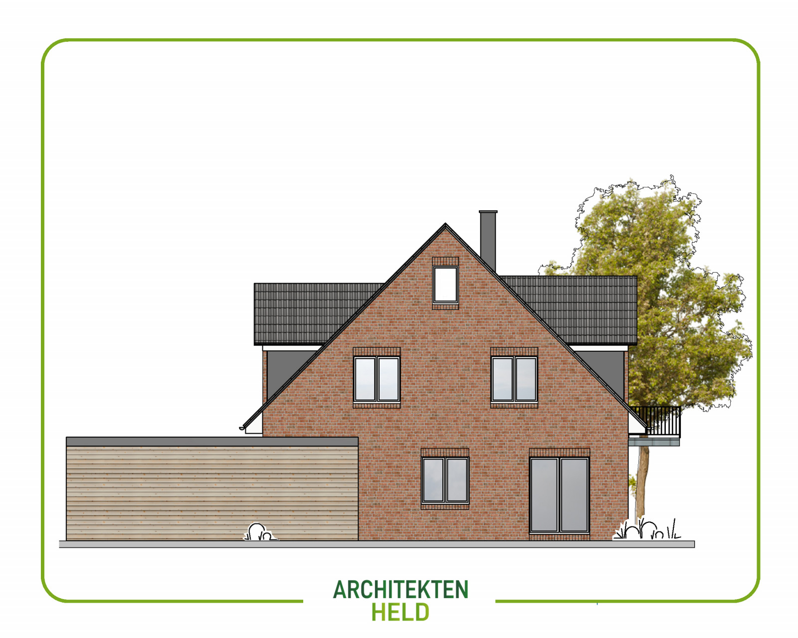 Dieses Doppelhaus mit Carport und Spitzbodenausbau und 115 m² Wohnfläche pro Haushälfte haben wir auf Kundenwunsch und grundstücksoptimiert angefertigt.