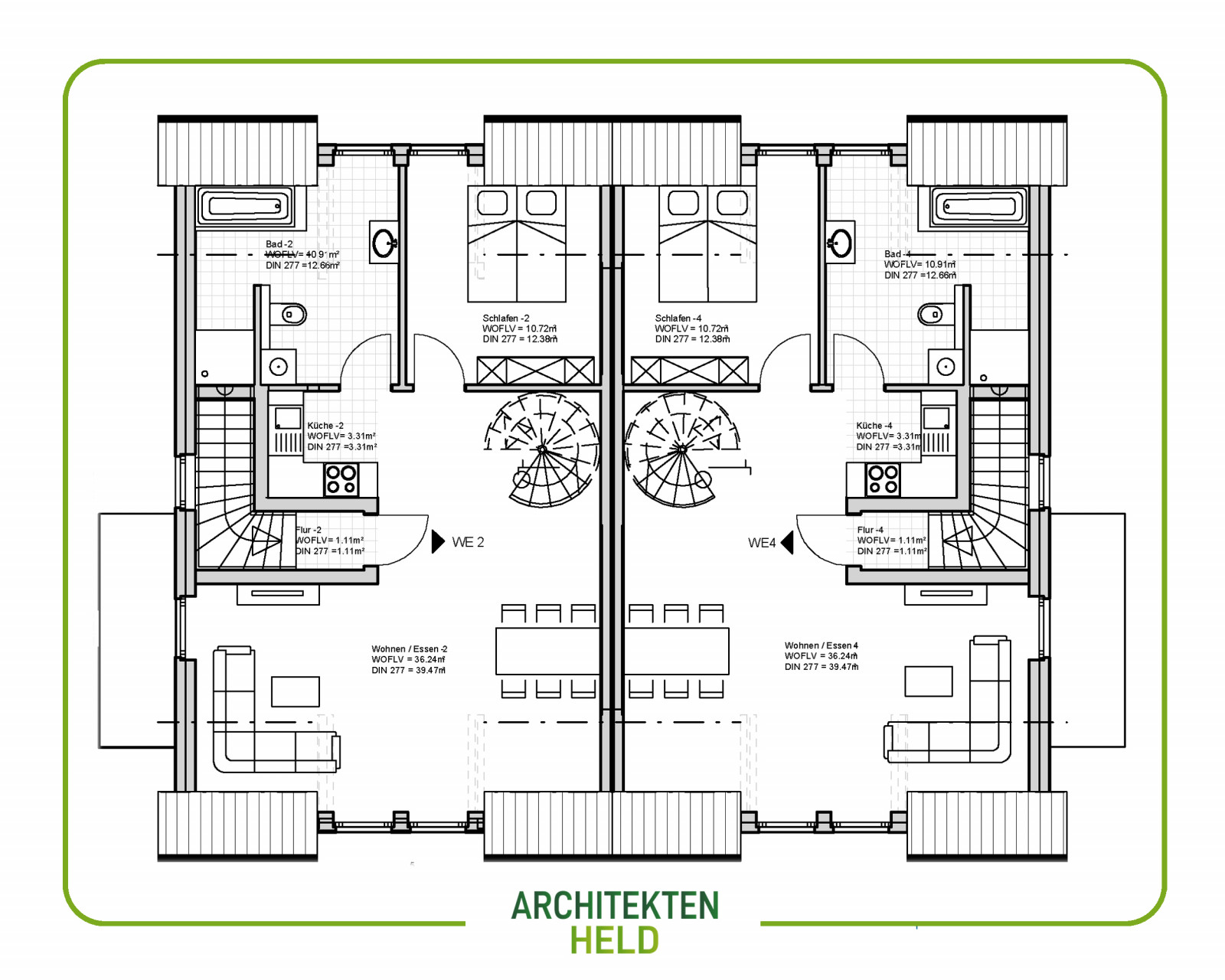 Doppelhaus mit 4 Wohneinheiten Entwurfsplanung